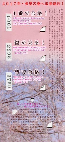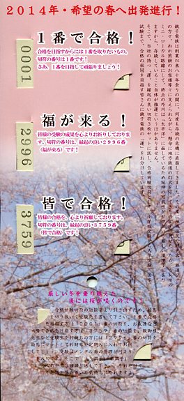 | 平成26年(2014年) 合格祈願切符 くもなしあかりバージョン | |
