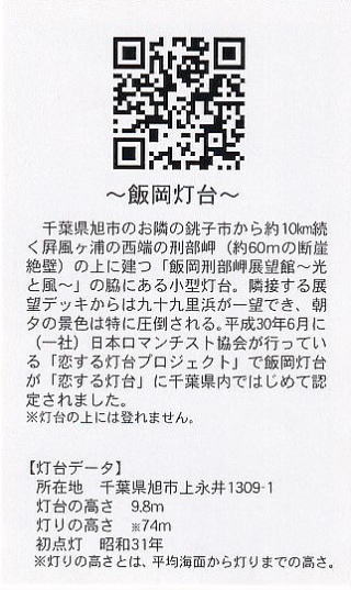 | 訪問記 | 飯岡灯台訪問(2016.8.14) 11月1日、灯台記念日の飯岡灯台(2018.11.1) ゴールデンウィーク〜飯岡灯台(2019.5.2) 恋する灯台『飯岡灯台』(2019.11.2) 11月1日は灯台記念日(2020.11.1) 『海と灯台ウィーク2022』の飯岡灯台(2022.11.4) |