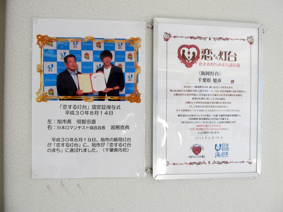 | 千葉県旭市を『恋する灯台のまち』として、ここに認定いたします。」 |