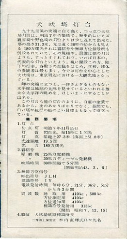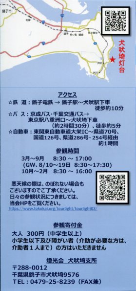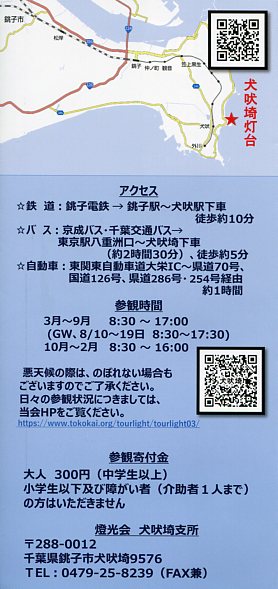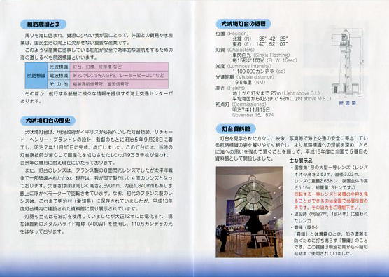 | 平成23年4月に犬吠埼灯台で「ミニチュア灯台」を購入した際にいただいたパンフ | |