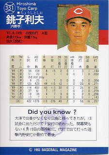 351 | 広島東洋カープ 銚子利夫[内野手] |