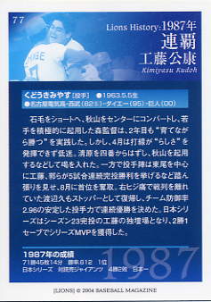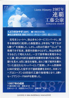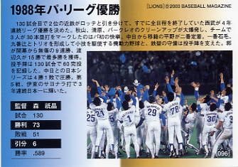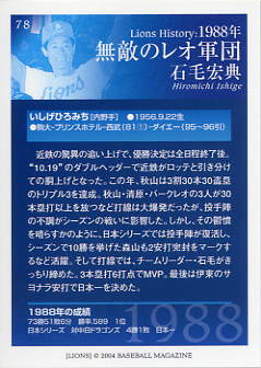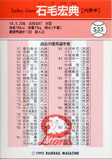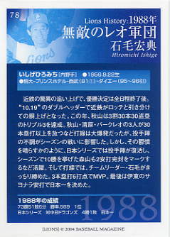 194 | 西武ライオンズ 石毛宏典[内野手] 右投右打 B型 身長180cm 体重75kg 最優秀選手 1回 新人王 |