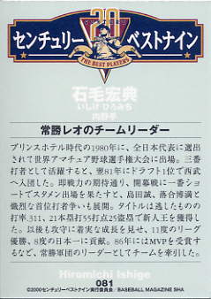 169 | 西武ライオンズ 石毛宏典[内野手] |