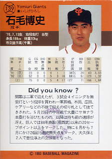 139 | 読売ジャイアンツ 石毛博史[投 手] |