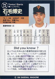 73 | 読売ジャイアンツ 石毛博史[投 手] |