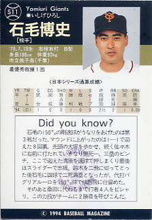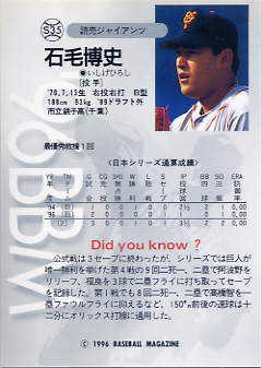 S11 | 読売ジャイアンツ 石毛博史[投 手] |