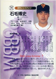 369 | 読売ジャイアンツ 石毛博史[投 手] 右投右打 O型 身長188cm 体重86kg |
