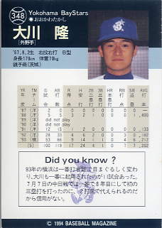348 | 横浜ベイスターズ 大川 隆[内野手] |