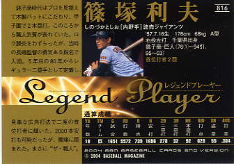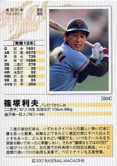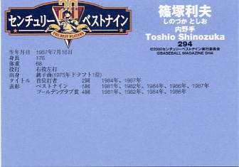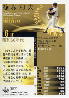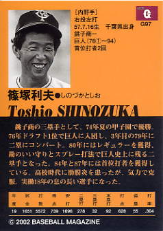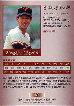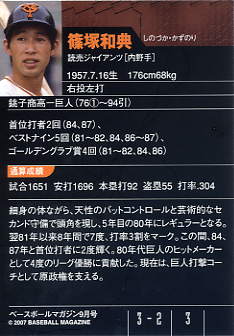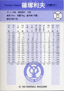 368 | 読売ジャイアンツ 篠塚利夫[内野手] 右投左打 A型 身長176cm 体重70kg 首位打者 2回 |