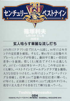 450 | 読売ジャイアンツ 篠塚利夫 ファン投票選出 打率 .340は落合に次いで歴代2位 '85年第3戦に4打数3安打で優秀選手に 選ばれている |