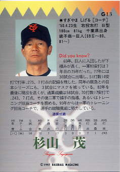 G13 | 読売ジャイアンツ 杉山 茂[コーチ] |