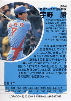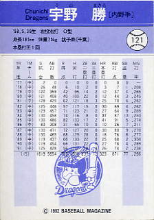 121 | 中日ドラゴンズ 宇野 勝[内野手] |