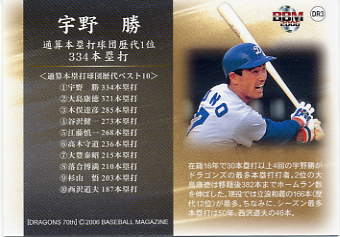 327 | 中日ドラゴンズ 宇野 勝[内野手] 右投右打 O型 身長180cm 体重75kg 本塁打王 1回 |