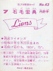 | ○ | M-19 | 石毛宏典 | 西武 | Memorial Card '81−No.43 | |