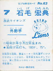 63 | 石毛宏典 西武ライオンズ |