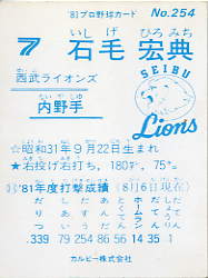 254 | 石毛宏典 西武ライオンズ |