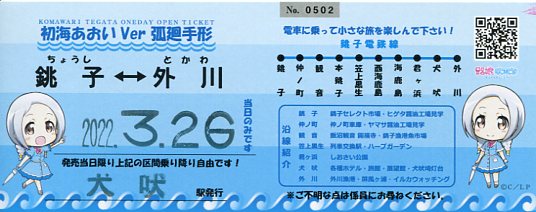 | 3月12日の「銚電犬吠埼温泉 ローカル鉄道&沖縄まつり」で、グッズデビューも果たしています。 |