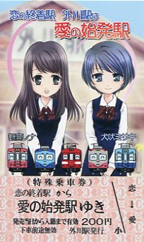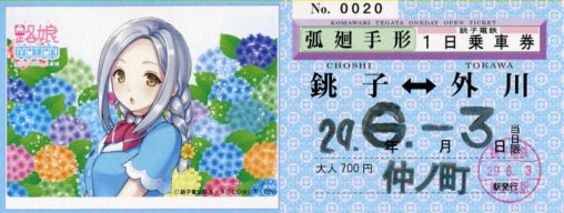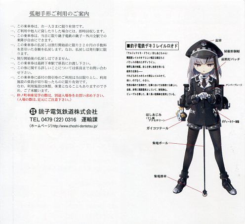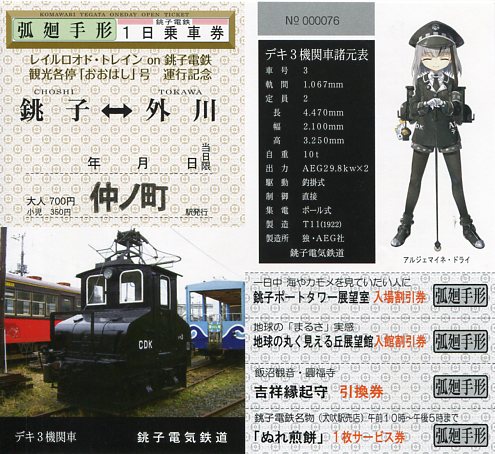 | 擬人化です。記念入場券や弧廻手形が発売されています。 |