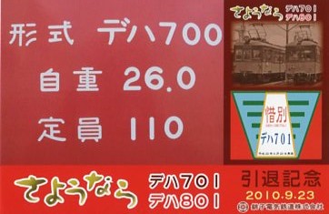 | 平成22年(2010年)デハ701・デハ801引退記念 | |