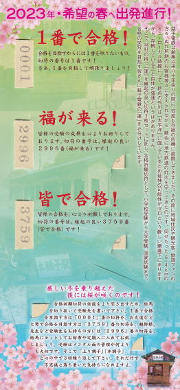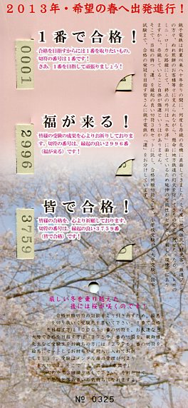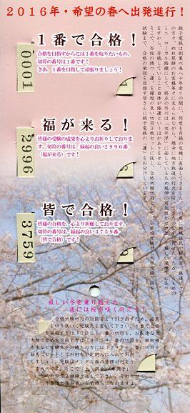 | 平成26年(2014年) 合格祈願切符 くもなしあかりバージョン | |