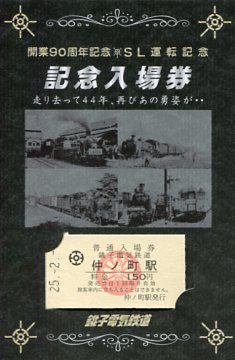 | 開業90周年記念・SL運転記念 記念入場券 仲ノ町駅 |