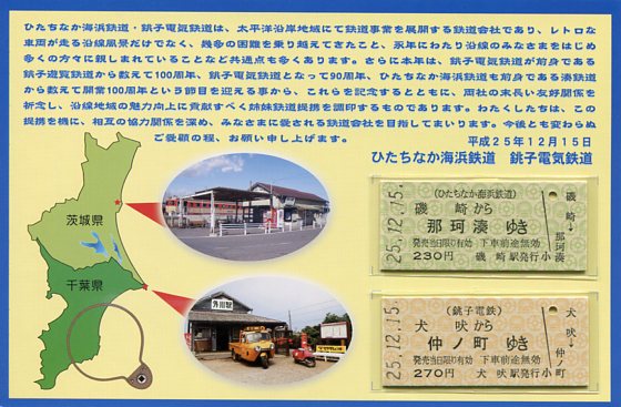 | 銚子電気鉄道・ひたちなか海浜鉄道 姉妹鉄道提携記念乗車券 銚子電気鉄道 |