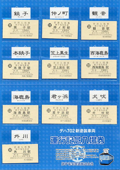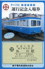 | デハ702新塗装車両運行記念入場券(水色地紋バージョン) 外川駅 150円 |