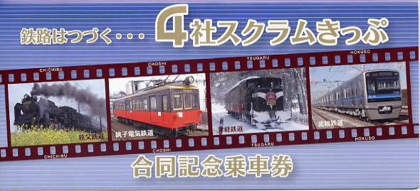 | 4社(秩父鉄道、銚子電気鉄道、津軽鉄道、北総鉄道)スクラムきっぷ |