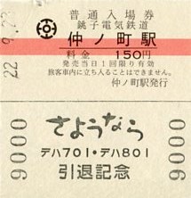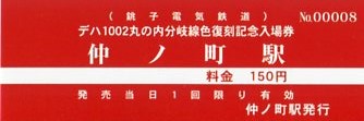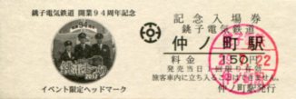 | 銚子電気鉄道 開業94周年記念入場券 仲ノ町駅 |