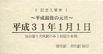 | 平成最後の元旦(H31)記念入場券 犬吠駅 |