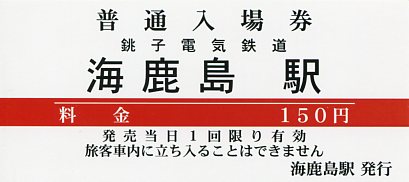 | 銚子電鉄開業90周年記念海鹿島駅入場券 |