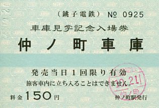 | 仲ノ町駅車庫見学記念入場券 |