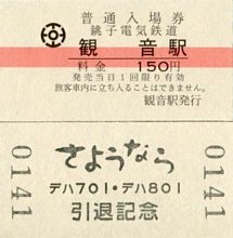 | 平成22年9月23日デハ701・デハ801引退記念入場券(観音駅) |