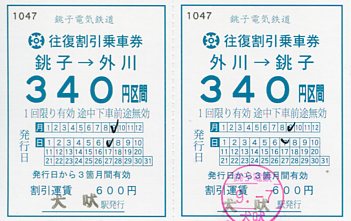| ※令和5年5月現在では最後の往復割引乗車券だと思います。 |
