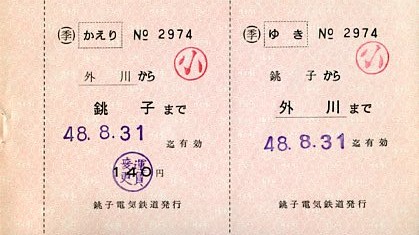 | 平成25年7月7日、銚子電鉄開業90周年記念で発売された銚子駅−外川駅 |