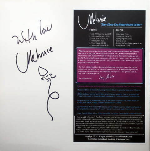 | ※ 2012年7月、メラニーのサイトのショップから通信販売で購入しました。レコードは、コレクターズエディションとしてメラニーの直筆サイン入りです。 |