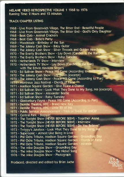 | MELANIE - Video Retrospective Volume One 1968 - 1976 | |||