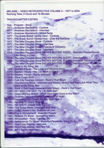 | MELANIE - Video Retrospective Volume Two 1977 - 2004 | |||