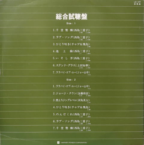 | ワーナー・パイオニア LS−92 1978年6月25日『かもめより白い心で・・・』アルバム発売 | |||