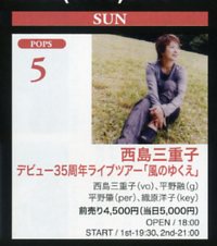 | 出演者 : 西島三重子(Vo)、平野 融(G)、平野肇(Per.) 、織原洋子(Key.) |