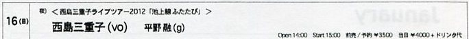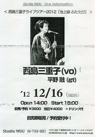 | 出演者 : 西島三重子(Vo、G)、平野 融(G) |
