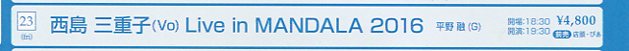 | 出演者 : 西島三重子(Vo、G)、平野融(G) |