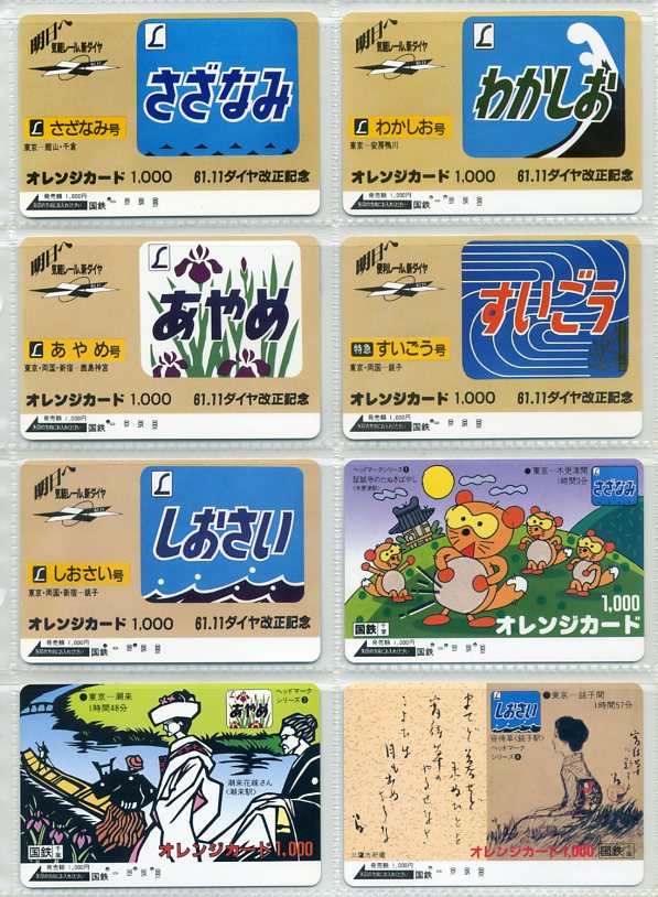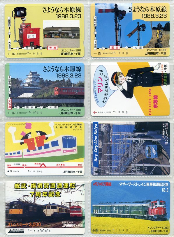 国鉄・千葉、JR東日本・千葉発行のオレンジカードのうち、「読売巨人軍シリーズ」、「横綱シリーズ」、「プロゴルファーシリーズ」、「優駿馬シリーズ」、それに県外の亀戸駅等のオレンジカードは掲載しませんでした。