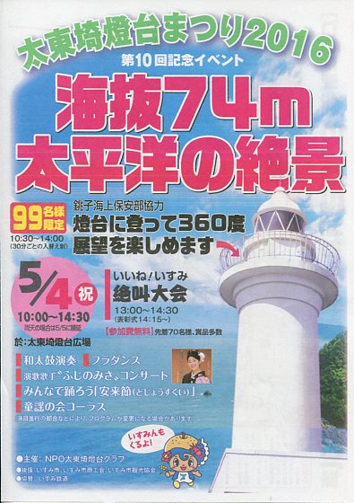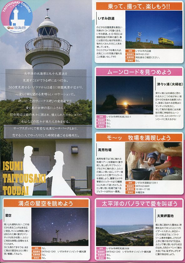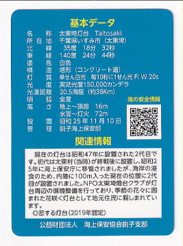 | 備 考 | 太東埼灯台が立地する千葉県いすみ市が、2019年7月1日 「恋する灯台のまち」と認定されました。 |