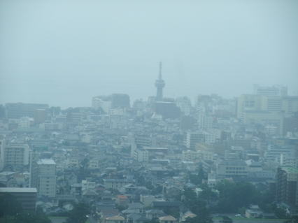 | 雨にけぶる別府の街と別府タワー |