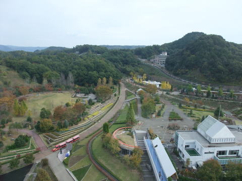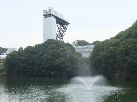 「花の海に浮かぶ船」をイメージした 高さ45メートルの展望タワー ガラス張り展望室と屋上デッキから 季節の花と緑に彩られた 園内を一望 |