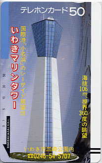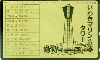 オークションで購入した テレホンカードです。 これは「いわき平けい りん」のカードですが、 このように市のシンボル としてタワーが取り上げ られることも多かったと 思います。 ・ホワイトカード ・50度数 ・品名 50<110-011> |