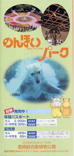 | 開 館 | 平成4年(1992年)4月オープン 前身の「豊橋市動物園」は昭和29年のオープンで、平成16年に 開園50周年を迎えました。『豊橋総合動植物公園規則』は、平成 4年4月15日の公布、同年4月29日の施行となっています。 パンフレットには「のんほいタワー」との名称は出てこないのです が、記念メダルには「豊橋のんほいタワー」と刻まれています。 正式名称は「豊橋総合動植物公園展望塔」だと思います。 |