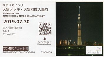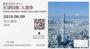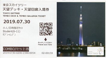 | 令和元年(2019年)6月9日訪塔時の入場券は、展望デッキと天望回廊のデザインが同じものでし |