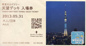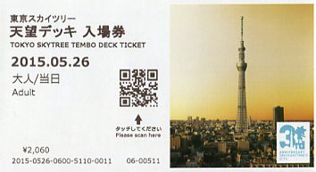 | た。これまで天望回廊の入場券に使われていた富士山のデザインが、天望デッキ入場券に使われ |